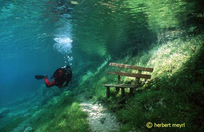 Gruner See is a green lake in Austria. In fact, this is a meadow in the woods, but it’s very unusual. From May to July it is filled up with water coming down from the mountains. In some places this lake’s depth is up to 8 meters. The water here is crystal clear.